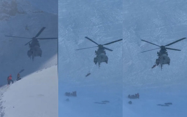 Στα δευτερόλεπτα του βίντεο εικονίζεται η στιγμή που η ειδική ομάδα διασωστών προσεγγίζει τις σορούς και τις παραδίδει στο ελικόπτερο.