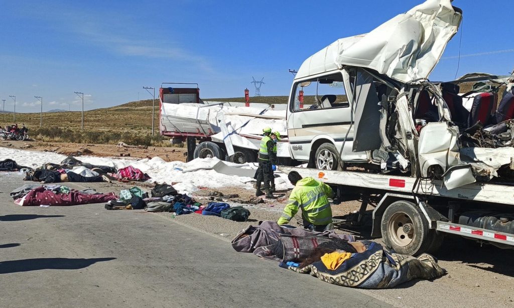 Τουλάχιστον 14 άνθρωποι σκοτώθηκαν κι άλλοι δύο τραυματίστηκαν εξαιτίας της σύγκρουσης λεωφορείου με φορτηγό, την Πέμπτη, σε επαρχιακό δρόμο της νοτιοδυτικής Βολιβίας.