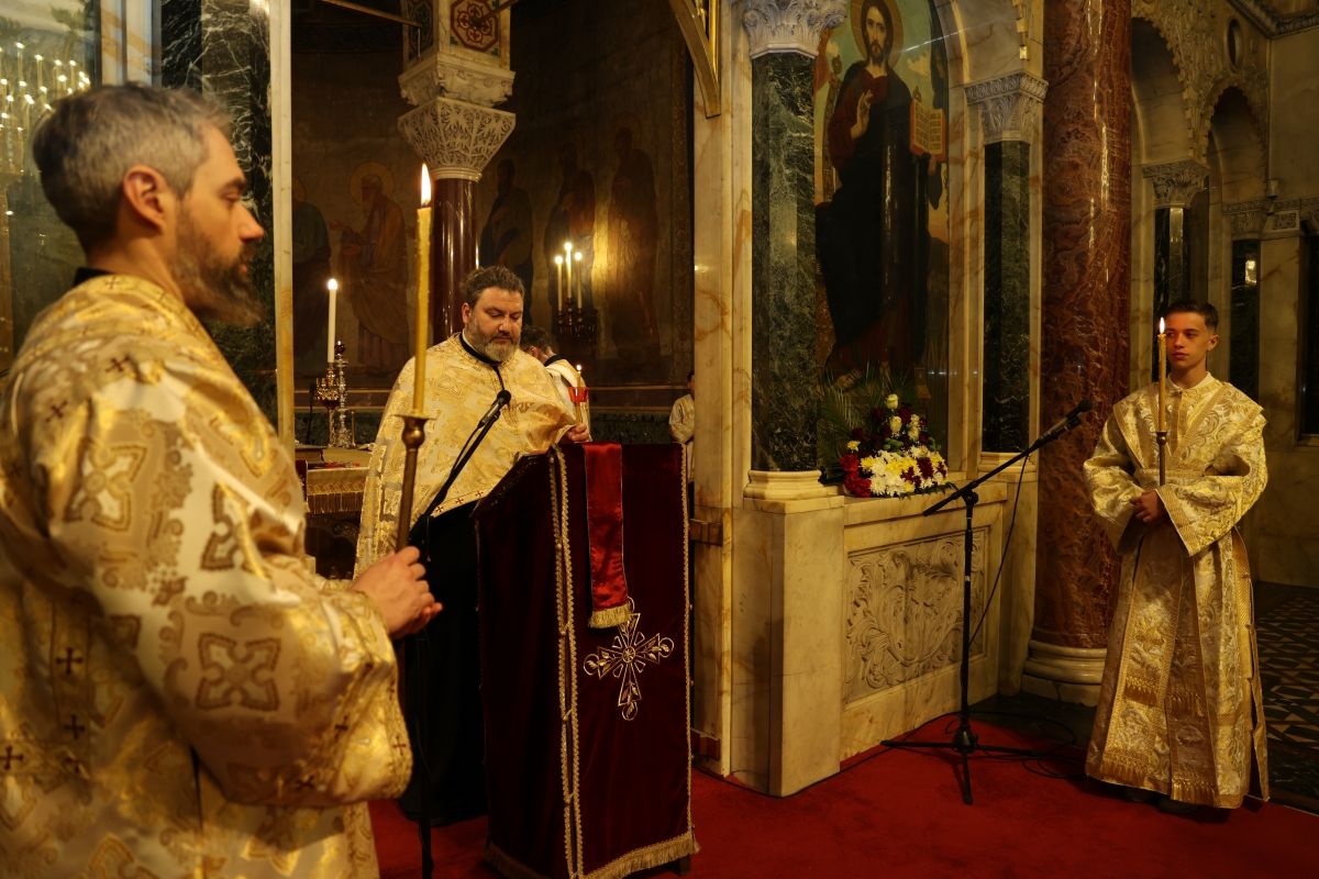 Στην ακολουθία των Αχράντων Παθών στον Πατριαρχικό Καθεδρικό Ναό του Αγίου Αλεξάνδρου Νιέφσκι προεξήρχε ο Μακαριώτατος Πατριάρχης Βουλγαρίας κ.κ. Δανιήλ, ο οποίος συγχοροστάτησε με τους Θεοφιλεστάτους Επισκόπους Μελνίκου κ. Γεράσιμο και τον Μπρανίτσης κ. Ιωάννη.
