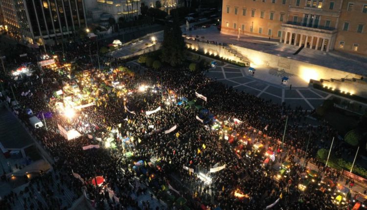 Ολονυχτία στο Σύνταγμα ακολουθεί το μεγάλο συλλαλητήριο των αγροτών, στη διάρκεια του οποίου δήλωσαν την απόφασή τους να συνεχίσουν τις κινητοποιήσεις τους για να ικανοποιηθούν τα αιτήματά τους, λέγοντας ότι πρόκειται για αγώνα επιβίωσης για τον πρωτογενή τομέα. Μετά το συλλαλητήριο, στο οποίο έδωσαν το παρών πάνω από 8.000 αγρότες από πολλές περιοχές όλης της χώρας, οι αγρότες που έφτασαν με τρακτέρ παρέμειναν στο Σύνταγμα για να αποχωρήσουν αύριο Τετάρτη 21/2, συντεταγμένα, όπως έφτασαν στην Αθήνα. Αργά το βράδυ οι συνάδελφοί τους που μετακινήθηκαν με πούλμαν άρχισαν να αποχωρούν.