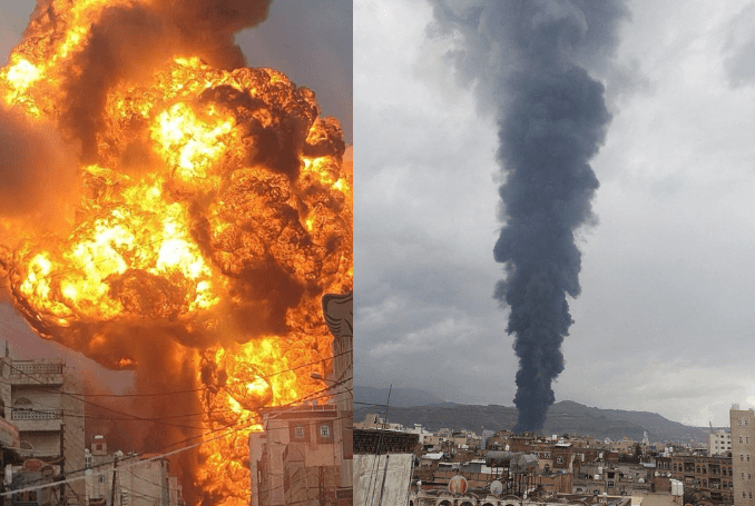 Το τηλεοπτικό κανάλι των ανταρτών, το Al Massirah, μετέδωσε μέσω της πλατφόρμας Χ ότι σημειώθηκαν πολλά πλήγματα «σε ένα πρατήριο καυσίμων της πετρελαϊκής εταιρείας στην οδό Αλ Σιτίν» και σε έναν σταθμό παραγωγής ηλεκτρικής ενέργειας στα νότια της Σαναά, που είχε βομβαρδιστεί και την περασμένη εβδομάδα. Ο πρώτος απολογισμός κάνει λόγο για «δύο νεκρούς και 35 τραυματίες» από την επίθεση στο πρατήριο.
