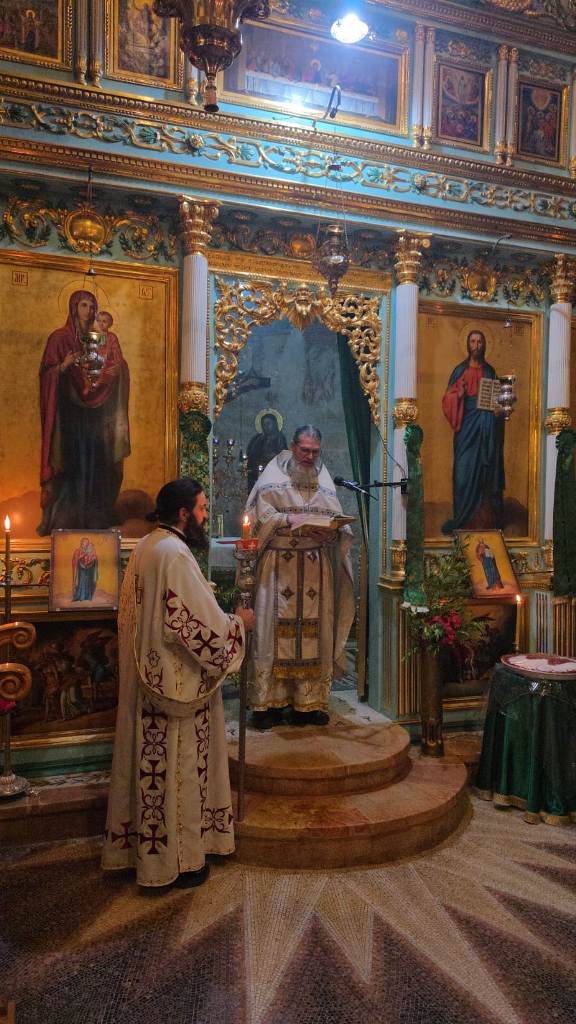 Της θείας Λειτουργίας προεξήρχε ο Ηγούμενος του Σαρανταρίου Αρχιμναδρίτης π. Ονούφριος, συλλειτουργούντος του Ρωσοφώνου Ιερέως π. Γερασίμου και του Ιεροδιακόνου π. Προδρόμου. Έψαλλαν ο Ηγούμενος της Μονής Γέροντας Χρυσόστομος, με τη βοήθεια του Αρχιμανδρίτου π. Χρυσοστόμου..