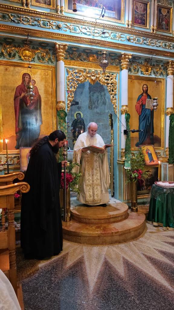 Τῆς θείας Λειτουργίας προεξῆρξεν ὁ Ἡγούμενος τοῦ Σαρανταρίου Ἀρχιμναδρίτης π. Ὀνούφριος, συλλειτουργοῦντος τοῦ Ρωσοφώνου Ἱερέως π. Γερασίμου καί τοῦ Ἱεροδιακόνου π. Προδρόμου, ψάλλοντος ἔτι ἀσθενοῦντος τοῦ Ἡγουμένου τῆς Μονῆς Γέροντος Χρυσοστόμου, τῇ βοηθείᾳ τοῦ Ἀρχιμανδρίτου π. Χρυσοστόμου καί τοῦ μοναχοῦ π. Ἀχιλλίου, τῇ συμμετοχῇ ἱκανοῦ ἀριθμοῦ μοναχῶν μοναζουσῶν, κατοίκων τῆς περιοχῆς Ἱεριχοῦς καί ὀλίγων προσκυνητῶν συνδεδεμένων στενῶς μετά τῆς Μονῆς.
