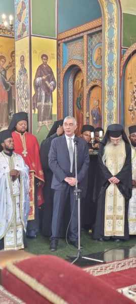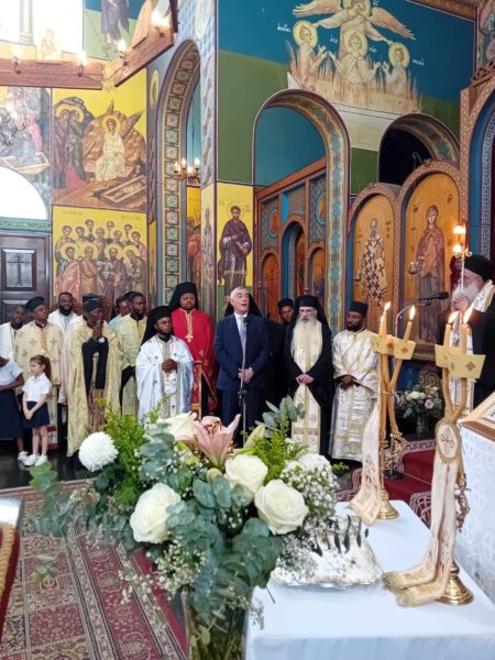 Σχετική ομιλία εκφώνησε και ο Πρόεδρος της Ελληνικής Κοινότητας Κινσάσας κ Γεράσιμος Ντούνης ο οποίος παρέστη μετά της συζύγου του κυρίας Παρασκευής Ντούνη- Τριανταφύλλου, ιατρού και άλλων Ελλήνων ομογενών.
