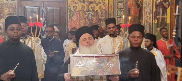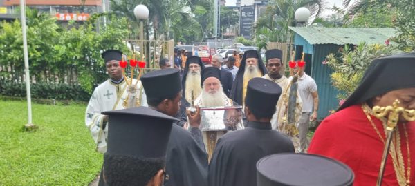 Τα Λείψανα υποδέχθηκε στον Ιερό Μητροπολιτικό Ναό του Αγίου Νικολάου της Ελληνικής Κοινότητας Κινσάσας ο Σεβασμιώτατος Μητροπολίτης Κινσάσας κ. Θεοδόσιος συμπαραστατούμενος υπό του Πρωτοσύγκελλου Αρχιμανδρίτη π. Γεράσιμου και λοιπών κληρικών της πρωτευούσης.