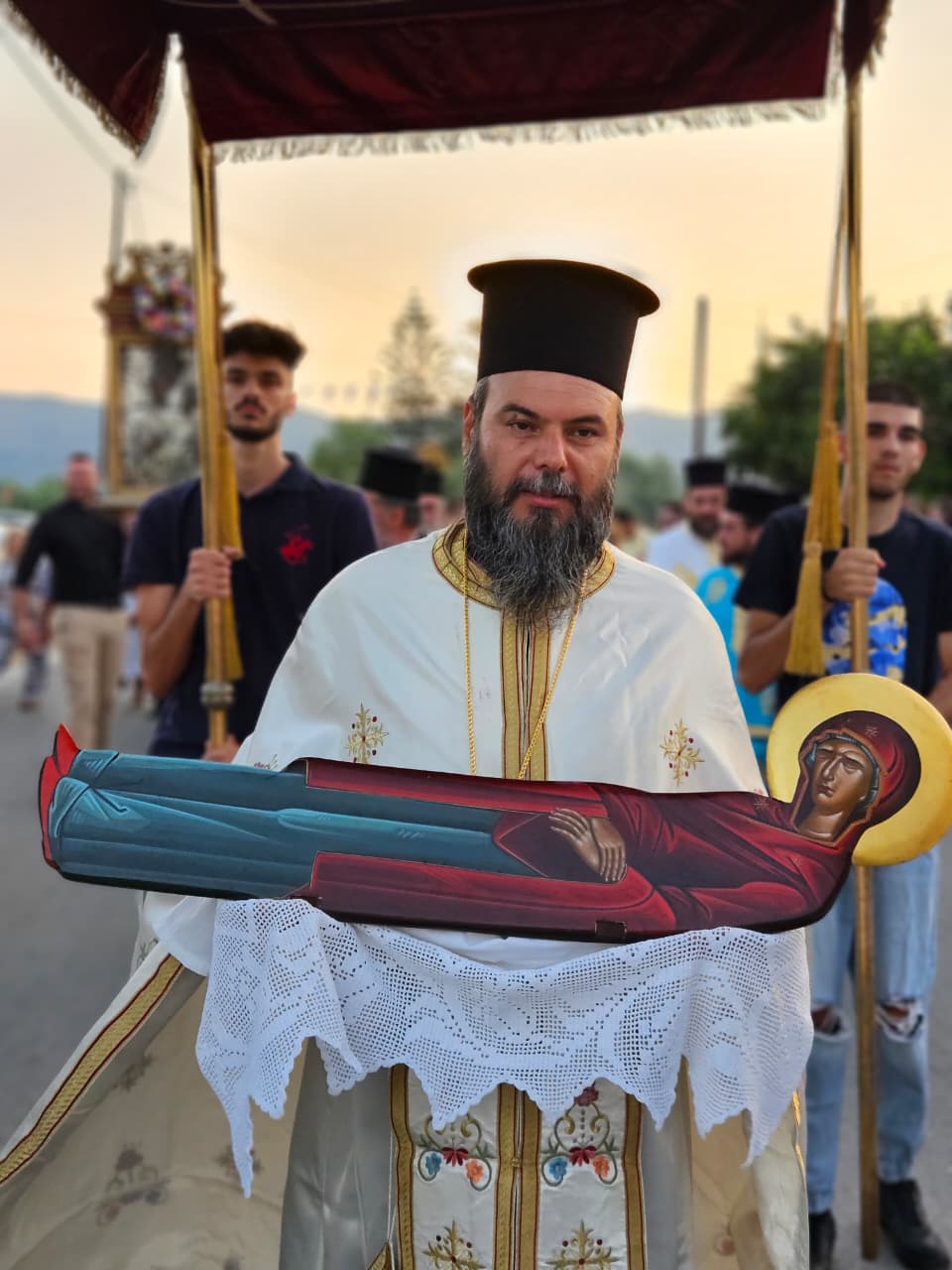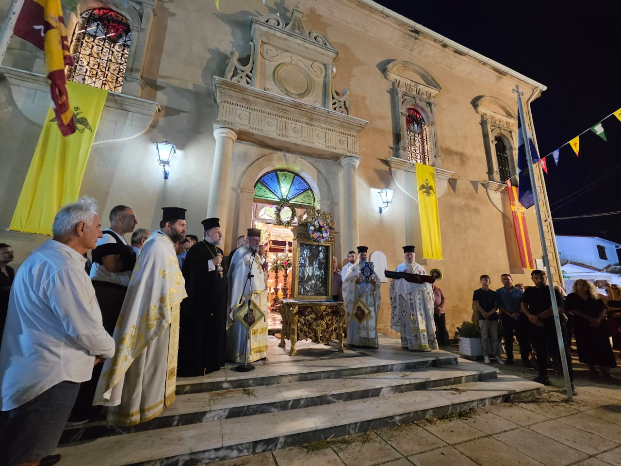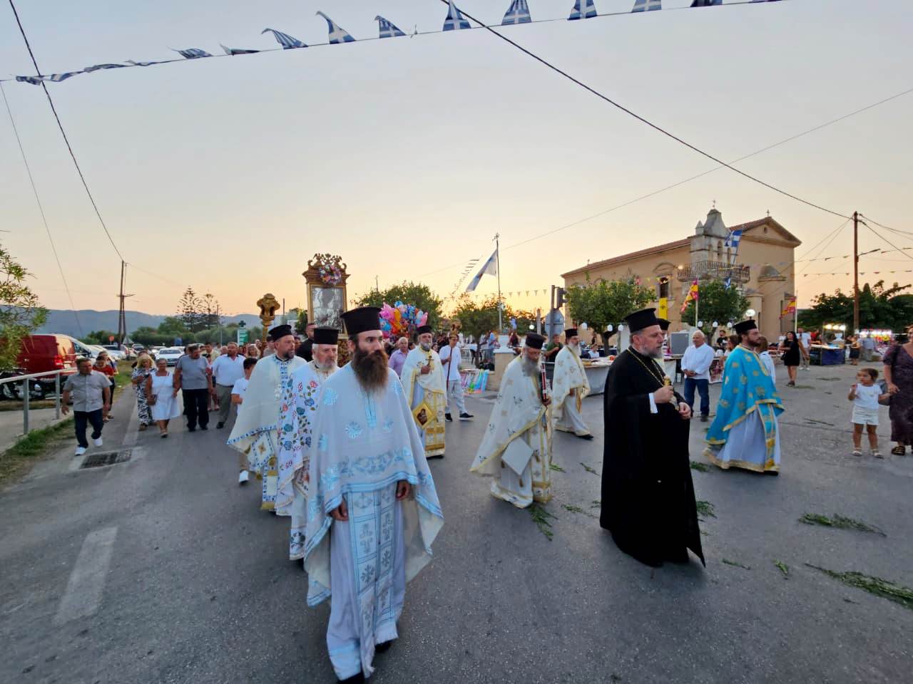 Πλήθος πανηγυριστών από όλη τη Ζάκυνθο και άλλα μέρη της πατρίδας μας, έφτασαν έως το Βανάτο της Ζακύνθου, το δειλινό του Δεκαπενταύγουστου 2025, για να τιμήσουν την Κοίμηση της Παναγίας ή μάλλον να τιμηθούν οι ίδιοι από την ευλογημένη παρουσία Της κατά την εθιμική Λιτάνευσή Της ανά την Ενορία!