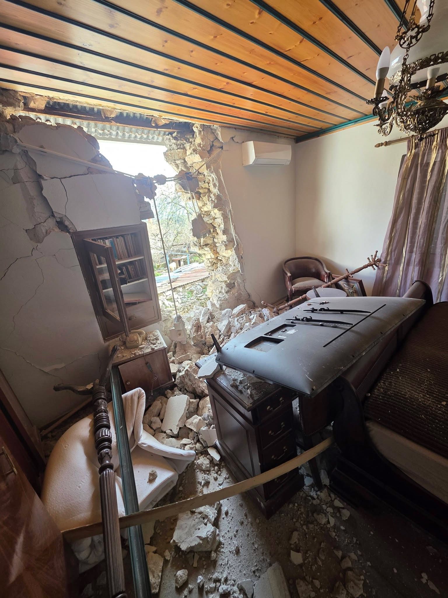 Σε ανάρτησή του ο Περιφερειάρχης Ηπείρου, Αλέξανδρος Καχριμάνης, αναφέρει ότι στο χωριό Ψήνα του Δήμου Δωδώνης οι πέτρινοι τοίχοι ενός σπιτιού δεν άντεξαν, ενώ μια εκκλησία έχει υποστεί εκτεταμένες ζημιές.